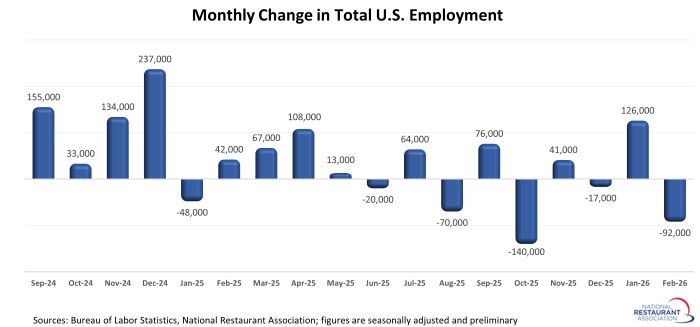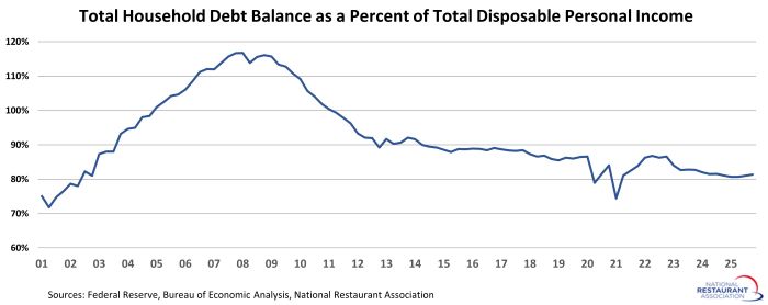 Household wealth continues to trend sharply higher, rising by more than $6 trillion in the third quarter of 2025. That followed an increase of more than $7 trillion in the second quarter, and represented seventh increase in the last eight quarters. The only interruption of the positive trendline was a modest dip in the first quarter of 2025, which was due largely to a decline in the stock market. In total during the last eight quarters, total household net worth jumped by nearly $30 trillion. That positively impacts consumers’ willingness to spend on discretionary items, including restaurants.