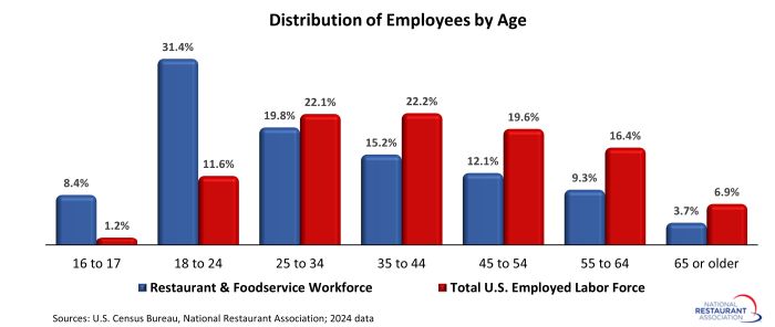 Restaurant and foodservice employees are also three times more likely than the total U.S. workforce to be under the age of 25.