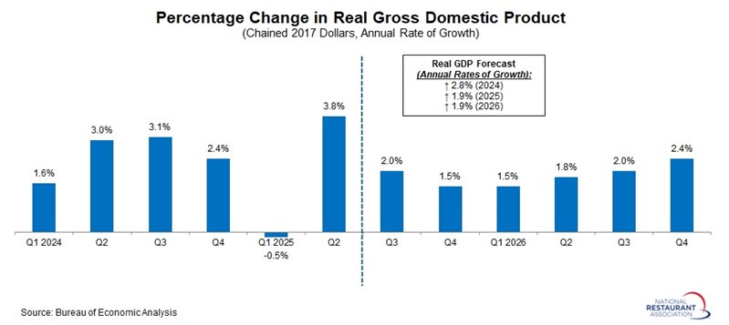 Looking ahead, the National Restaurant Association forecasts continued growth, with real GDP projected to rise by 1.9% annually in both 2025 and 2026. This outlook reflects ongoing momentum, even as downside risks remain.