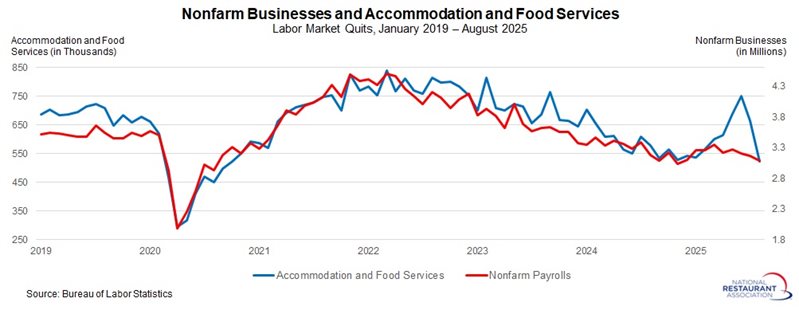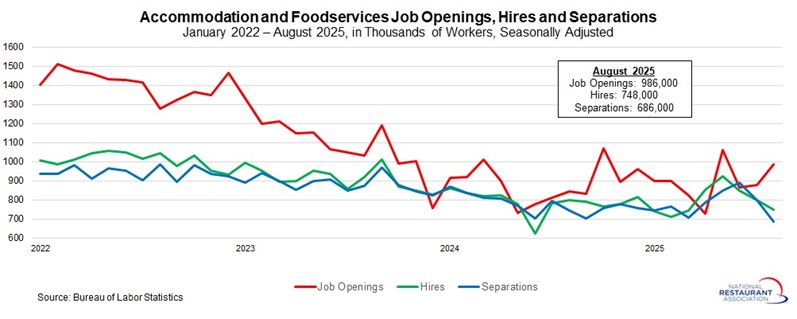 Job openings in the restaurant and lodging sector rose from 880,000 in July to 986,000 in August, marking the highest level in three months. Over the first eight months of 2025, openings averaged 893,000, underscoring steady demand for labor in the accommodation and foodservices industry—perhaps surprisingly resilient given broader economic uncertainties.