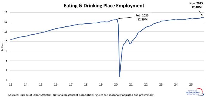 Overall during the past 5 months, eating and drinking places added more than 120,000 jobs. That was a solid improvement from the choppy first half of 2025, when the industry lost a net 4,200 jobs.